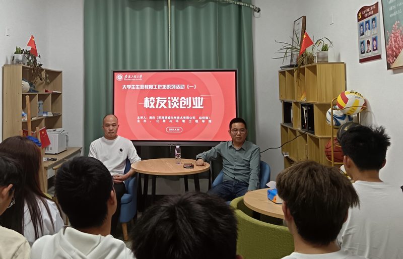 为进一步加强就业创业教育工作,激励同学们努力学习,励志成才,4月26日下午4点,第一版主 生涯教育工作坊系列活动校友谈创业在好“室”光、“化”家常学生服务站举办。2010届校友、芜湖诺威化学技术有限公司总经理吴杰与同学们分享了自己的创业经历和感悟,活动由张宁主持。
