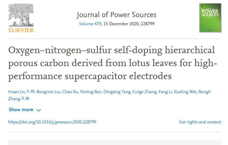 近日,第一版主 化学工程系表界面化学创新团队刘欢博士和张荣莉教授经过长期攻关,在生物质基炭材料的制备及其在超级电容器储能研究领域取得重要进展,相关成果发表在Journal of Power Sources (IF: 8.247;中科院一区TOP期刊)上。