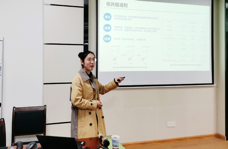 李品华详细介绍了其课题组在无外加光敏化剂条件下可见光促进的有机反应领域的研究进展,分享了科研过程如何发现问题、解决问题的思路和方法。魏学岭从“采用预脱气+压差”组合解决传统分子筛膜缺陷、通过“桥接”技术制备无缺陷分子筛膜和利用甲基纤维素辅助修补分子筛膜3个方面分享了其在分子筛膜的设计制备与性能研究领域的研究成果。徐凯佳总结了其近年来在基于低共熔溶剂的样品前处理方面的研究成果,主要包括将低共熔溶剂与双水相萃取体系、磁性固相萃取体系、分子印迹体系相结合并应用于生物大分子及染料分子的分离分析。