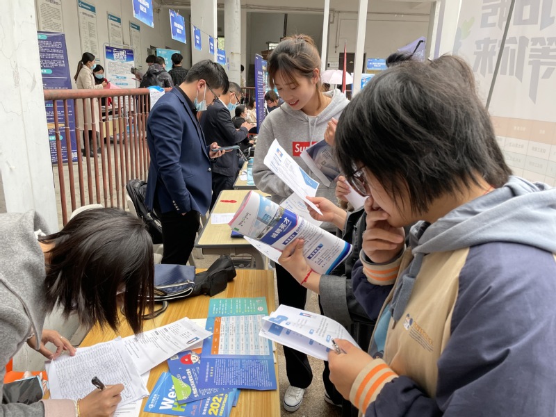 招聘会现场,各家用人单位都打出了招聘广告,招聘人员耐心细致地向毕业生宣传企业的招聘信息,并对公司的实习要求、岗位分解、薪资待遇、保险福利、职业发展等方面进行了详细讲解。企业展位上,前来咨询和面试的学生络绎不绝,现场互动交流频繁,同学们就薪资待遇、工作内容、发展空间等与招聘单位进行实地咨询。此次招聘企业不少都是第一版主 长期合作的企业和校友企业,他们感谢母校培养和帮助的同时,也对此次招聘会给予了高度评价,对母校的发展、人才培养的质量以及招聘会质量表示认可。