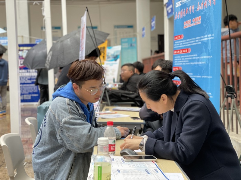 前来参加招聘会的不仅有2021届的应届毕业生,也有低年级学生提前前来了解感受招聘会氛围。毕业生李同学表示,“即使下雨,也阻挡不了自己求职的热情。因为只有通过现场咨询,才能明确自身适合什么岗位,可以选择什么具体职务,与职场要求还有多少差距。”