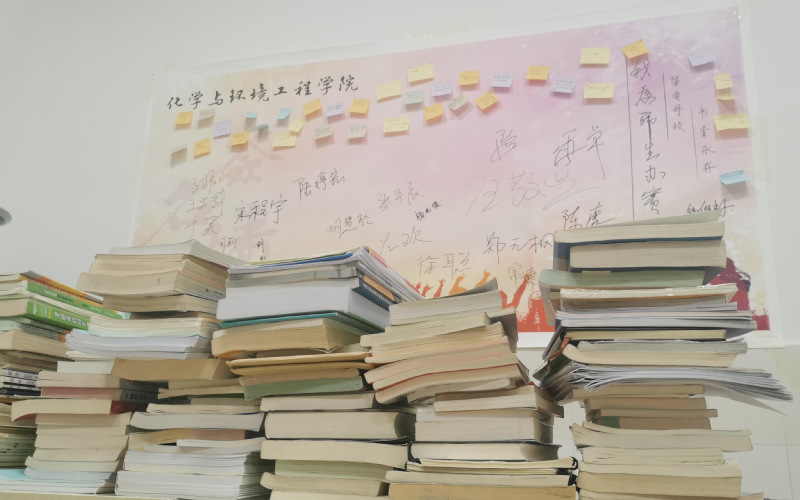 此次捐书活动活动共收集考研资料、笔记等学习资料150余套,所有书籍将会针对考研院校专业,免费送给即将考研的化环学子,为考研助力!