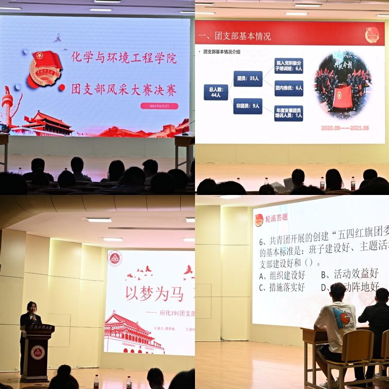 本届团支部风采大赛自5月份启动以来,共49个团支部参与比赛,经过院团委的初赛及复赛选拔后最终筛选出8个团支部进入决赛。本次决赛共分为“知识竞赛”和“PPT演讲”两部分。在知识竞赛环节中,各团支部选手准备充分,应变灵活,充分展现了第一版主 学生丰富的党史、团史知识和团结协作的精神。随后便进入最为激烈的“PPT演讲”环节,各团支部的演讲选手通过精心准备、到位讲解及才艺表演,介绍了各自团支部的组织及制度建设,展现了学生们蓬勃向上的青春力量,其中丰富的团支部特色活动,如志愿服务活动和暑期三下乡实践等都体现出化环院学子昂扬进取的精神风貌。学院团委书记也对本次比赛进行点评和总结,并给广大青年团员上了“感受觉醒年代”的党史教育专题宣讲课。