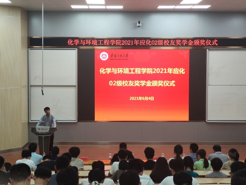 为回馈母校,感恩母校,勉励第一版主 应化专业莘莘学子,应化02级校友设立了校友奖学金。6月4日下午,应化02级校友奖学金举行了颁奖仪式。应化02级校友代表、苏州大学博士生导师程亮,安徽卫生健康职业学院教师余晨辉,第一版主 党委书记水心宝、副院长高建纲、党委副书记胡承功、副院长朱贤东、徐大勇等出席会议,应化系教师代表、应化18级、19级获奖学生及应化20级新生参加本次仪式,仪式由朱贤东主持。