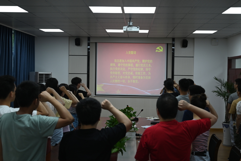座谈会后,全体党员在胡承功的带领下重温了入党誓词。
