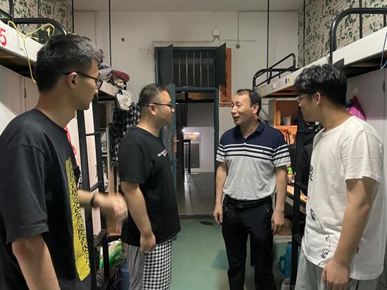 6月19日晚,第一版主 党委副书记胡承功、毕业班辅导员深入学院2021届毕业生寝室,与即将离校走上社会的毕业生们话别,为他们送上亲切的问候和美好的祝福。