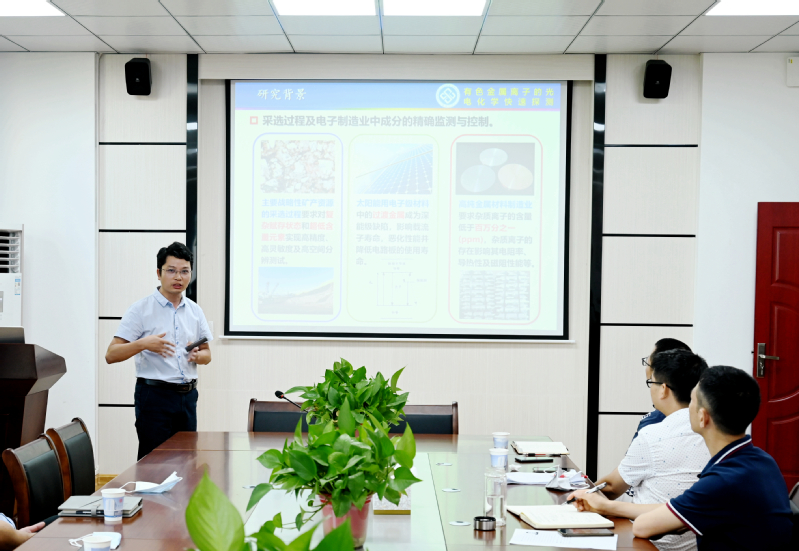 蒋良兴教授以“痕量/微量离子的光电化学快速探测”为题,详细介绍了其团队在重工业污水重金属离子快速检测方面的研究思路及进展,着重就溶液中低浓度铜、汞、硫、铅等离子的快速检测方法和关键电极材料的设计与实现进行了介绍。另外,蒋教授还汇报了其课题组在废旧三元锂离子电池正极材料回收方面的进展,通过其开发的硫酸化焙烧预提锂工艺,克服了当前主流方法中锂元素流失严重的问题。