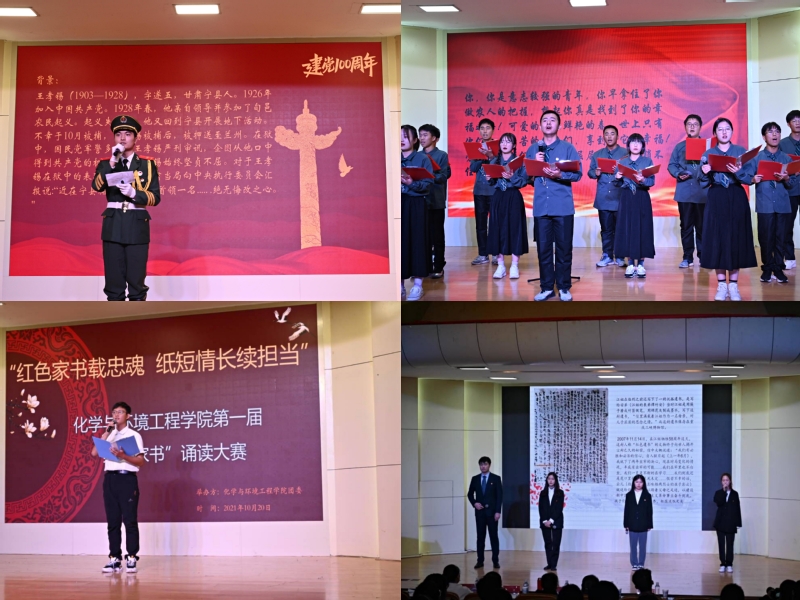 为进一步推升做实在青年大学生中开展党史学习教育,引领团员青年传承革命精神,坚定理想信念,坚定奋斗意志,10月20日下午,第一版主 以“诵红色家书 传革命基因”为主题的第一届红色家书诵读大赛决赛在学术报告厅举行。第一版主 党委书记水心宝、党委副书记胡承功以及学院团委书记、辅导员及学生代表近300人观看了比赛。