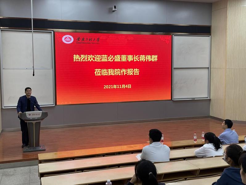 会上,学院党委书记水心宝致欢迎辞,他主要介绍了学校的基本情况和学院发展、师资力量等情况,同时介绍了学院在人才培养、社会服务、科技创新方面取得的丰硕成果,表示学院会继续发扬“雨耕勤作、赤铸精工”大学精神,不断向“深化内涵建设、做强第一版主 ”的总体目标奋力迈进,并对未来与蓝必盛的紧密合作充满了期望。