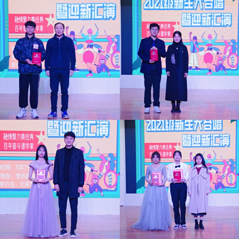 新生大合唱决赛经过激烈的角逐,《同一首歌》、《走向复兴》、《国家》三支作品拔得头筹,分别获一、二、三等奖;《我和我的祖国》、《党旗飘扬的方向》获得优秀奖。