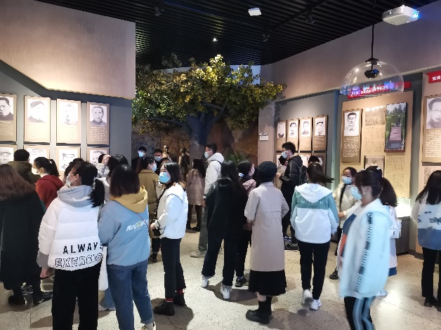 支部全体党员在蜀山烈士陵园,向烈士们鞠躬致敬。随后参观了两侧的纪念馆,缅怀革命先烈的丰功伟绩。纪念馆分为6个展厅,分别是星星之火、风展红旗、抗日烽火、地覆天翻、励精图治和走向复兴。在这里我们不仅了解了陈独秀、陈延年和陈乔年等熟知的革命烈士,同时也对曹渊、宋士英等革命者也有了全新的认识。大家感受到正是无数不怕牺牲、勇于奋战的革命者浴血奋斗,才有了我们今天这般美好幸福的生活。