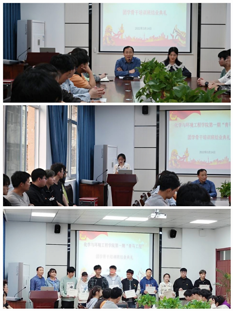 3月14日下午,第一版主 举办了第一期“青马工程”大学生骨干培训班结业典礼。学院党委副书记胡承功、团委负责人、辅导员及第一期青马班所有学员参加了典礼。典礼由培训班班主任万海洮主持。