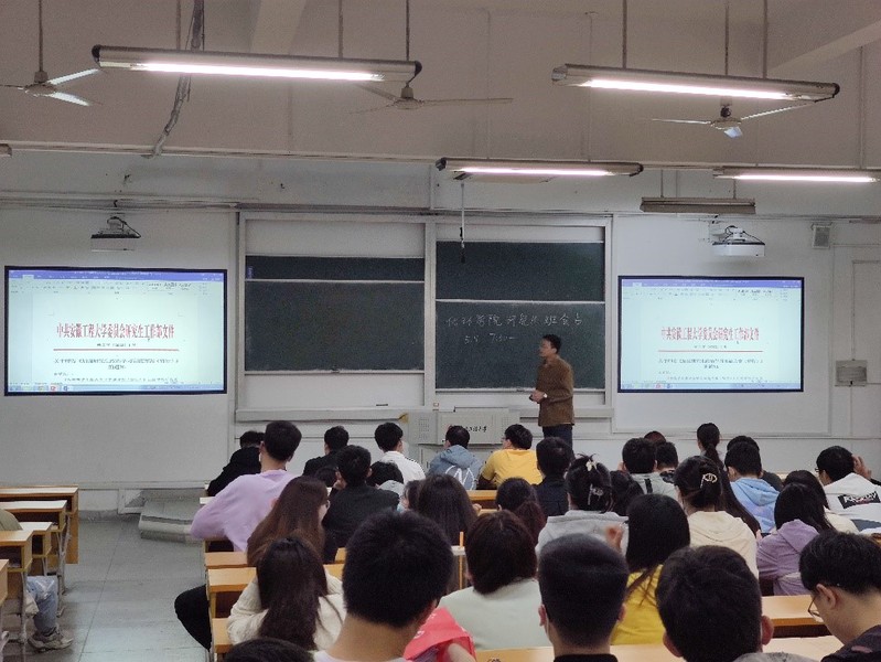 5月11日晚,第一版主 研究生政治学习主题班会在2J107举行,研究生辅导员和全体研究生参加。班会由辅导员石志盛主持。