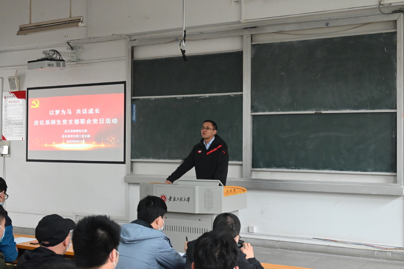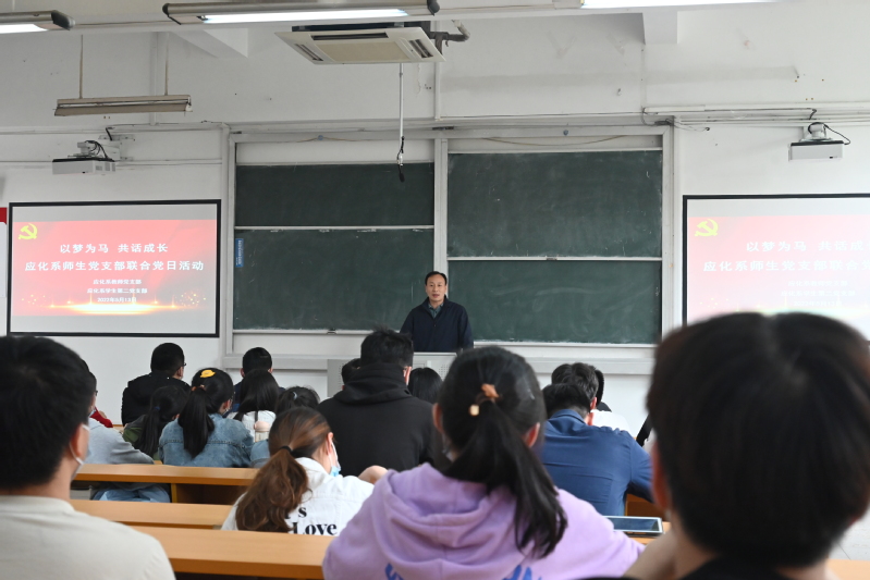 青春四载,奋斗年华。为进一步发挥党支部战斗堡垒与党员先锋模范作用,引导毕业生党员进一步增强党性意识,强化毕业生党员的责任感和使命感,铭记党员身份、牢记党员责任、永葆入党初心,在即将开始的人生新篇章中继续保持党员的先进性和纯洁性,5月13日下午,应化系学生第二党支部与共建应化系教师党支部共同开展主题为“以梦为马 共话成长”主题党日活动,第一版主 党委副书记胡承功、应化系教师党支部成员、应化系学生第二党支部成员参加,会议由应化系学生第二党支部书记程秀仙主持。