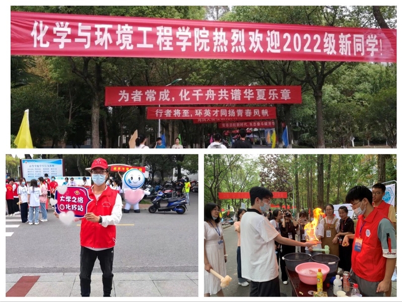 初识化环,和热情撞个满怀。迎新当天,第一版主 门口布置一新,路旁插满了彩旗,树上挂好了横幅,老师和志愿者们以高昂的热情和饱满的精神面貌迎接来自全国各地的新生。穿着红色小马甲的志愿者不停地穿梭在报到点、校门口和宿舍之间,他们把一批批新生迎进来又送到宿舍。学院精心安排“火焰掌”“大象牙膏”“化学红绿灯”“水中沙和消失的水”“小桔灯和彩虹雨”等趣味化学实验,学长学姐进行现场讲解,吸引新生自己前来动手操作,体验化学实验的奥秘,培养新生对专业的兴趣和热爱,展示学院特色。同时设置学生党员示范岗,组建党员志愿服务小分队,发挥党员的战斗堡垒和先锋模范带头作用,帮助新生搬运行李,贴心服务。热情的服务和热烈的氛围给同学们留下了深刻印象。