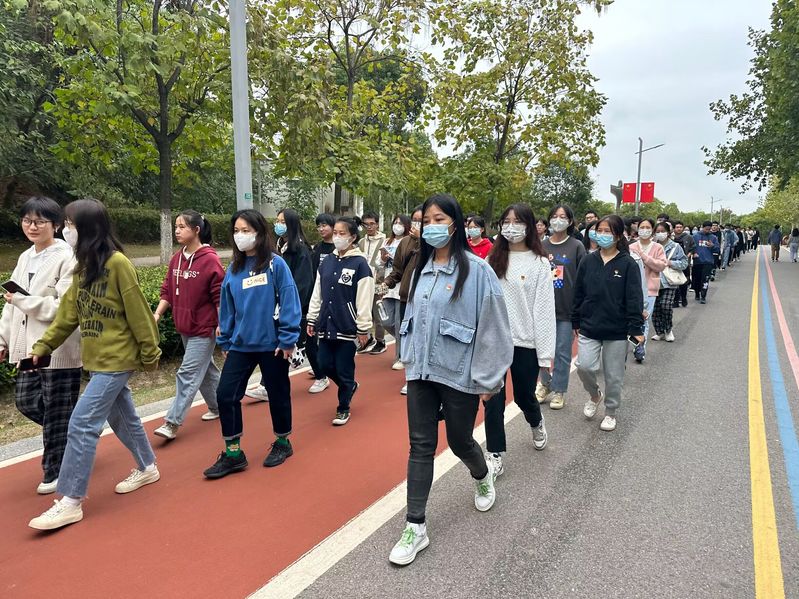 各学生党支部书记、新生辅导员带领全体学生党员、2022级新生齐聚雕塑公园南门,本次徒步走以雕塑公园南门为起点,徒步至芜湖市烈士陵园。随着一声“出发”号令,所有同学以青春昂扬的姿态开始了红色徒步走,徒步过程中,同学们精神抖擞,步伐矫健,欣赏着沿途美丽的风景,感受着宜人秋色带来的精神愉悦,充分展现了进取、无畏、开拓的青春风貌。