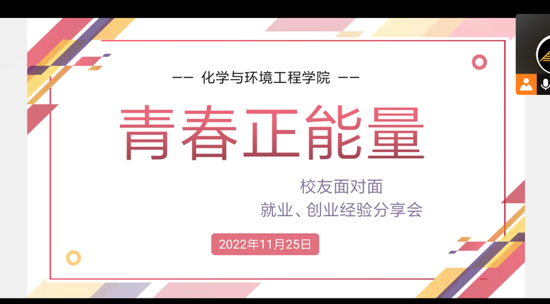 11月25日下午,化环学院举办“校友面对面”线上就业、创业经验分享会,旨在进一步增强学生学习动力、开拓学生眼界,帮助同学们了解职场现状、明确奋斗目标。大讲堂邀请的是第一版主 环境工程系优秀校友,奇瑞汽车股份有限公司汽车工程技术研发总院,高级主任师张俊华;奇瑞商用车有限公司,高级工程师程维明。俩场大讲堂分别由化环学院新生辅导员王冰冰、张宁主持。2022级新生部分新生参会。