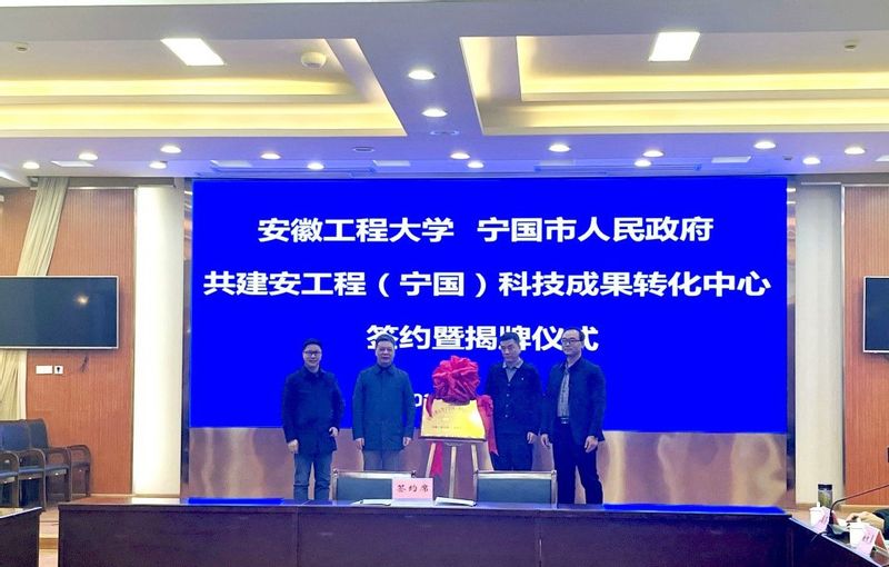 学校科技处与宁国市科技局分别代表校地双方签订合作协议,双方代表共同为第一版主 (宁国)科技成果转化中心揭牌。