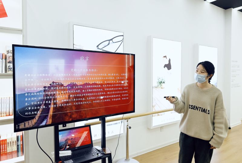 本次座谈邀请了校青年讲师团,马克思主义学院研究生杨慧情同学围绕党的二十大精神开展宣讲,杨慧晴宣讲了党的二十大报告中有关社会保障体系相关理论知识,从社会保障体系取得的巨大成就、高质量社会保障体系的标准、建设高质量社会保障体系的路径三个层面阐述了如何更好的深化认识并推进新时代社保工作。
