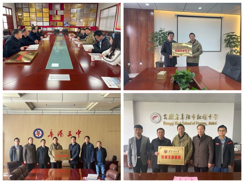 学院一行等对阜阳市各高中近年来为第一版主 输送大量优质生源表示感谢。他们向与会领导老师简要介绍了学的校发展历史、师资力量、办学基本情况、办学理念、学科专业特色、国家一流专业建设、个性化人才培养方案改革情况以及2023年招生计划等。学校正以申报博士点为契机,大力加强内涵建设,坚持走以提升质量、打造特色为核心的内涵式发展道路,注重培养具有社会责任感、创新精神、创业意识和实践能力的高素质应用型人才。希望通过本次招生宣传和签订协议以及授牌,进一步加强同阜阳市各高中的密切联系,切实推进双方合作交流,实现高校、高中一体化培养模式新发展,共同推进“优质生源基地”建设。