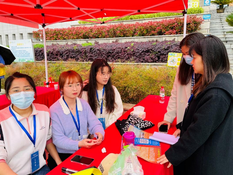 招聘会开始前,支部成员们提前到达会场,熟悉环境,协调分配工作任务,积极做好前期准备工作。用人单位到场后,引导参会代表找到指定位置并协助布置展位、分发资料。会场设置了党员服务站,由四位支部成员轮流值守,为参会学生提供应聘咨询、求职指导、物品寄存、道路指引等服务。