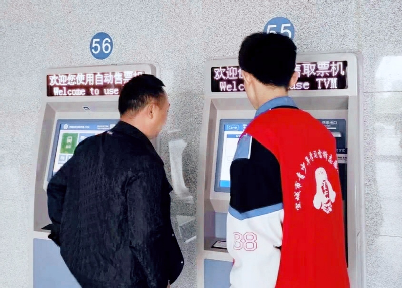 据悉,在活动中,凌远志同学每天负责在宣城高铁站东站房的无人售票厅内服务,对于不会操作机器的老年人和有困惑的青年门提供及时的帮助。在活动过程中,他积极主动,乐于助人,帮助乘客买票、取票、打印凭证等,缓解了宣城高铁站五一庞大的客流量。凌远志同学说:“我主要负责的工作就是辅助旅客取票检票,有一些老年人不会使用智能手机,也不知道如何在网上看票务信息,会浪费很多时间,我所做的就是帮助并教会他们如何快速买票取票。作为一名青年志愿者,做的这些其实都很微不足道,但是看到旅客们的笑容时,我就会感到无比高兴和自豪。”