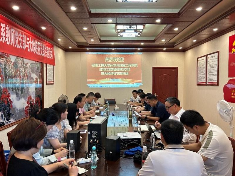 共建对接交流会上,七都镇党委副书记张亚楠对第一版主 教师党支部教师的到来表示热烈的欢迎,他介绍了七都镇的基本情况,镇政府高度重视产学研融合发展工作, 将大力支持中小企业与高校院所开展产学研协同创新;安徽大岭峡谷饮料有限公司董事长王超勤详细介绍了企业发展历程、企业技术需求及面临的技术瓶颈问题等;公司党支部书记廖中平结合企业的发展和经营,介绍了党支部的建设成果以及在企业发展中的党支部战斗堡垒作用发挥的典型作法;环工系教工党支部书记杨晓凡介绍了支部基层党建工作概况以及支部共建成果,并与党员教师围绕、企业生产技术等主题和共建支部开展了深入交流。
