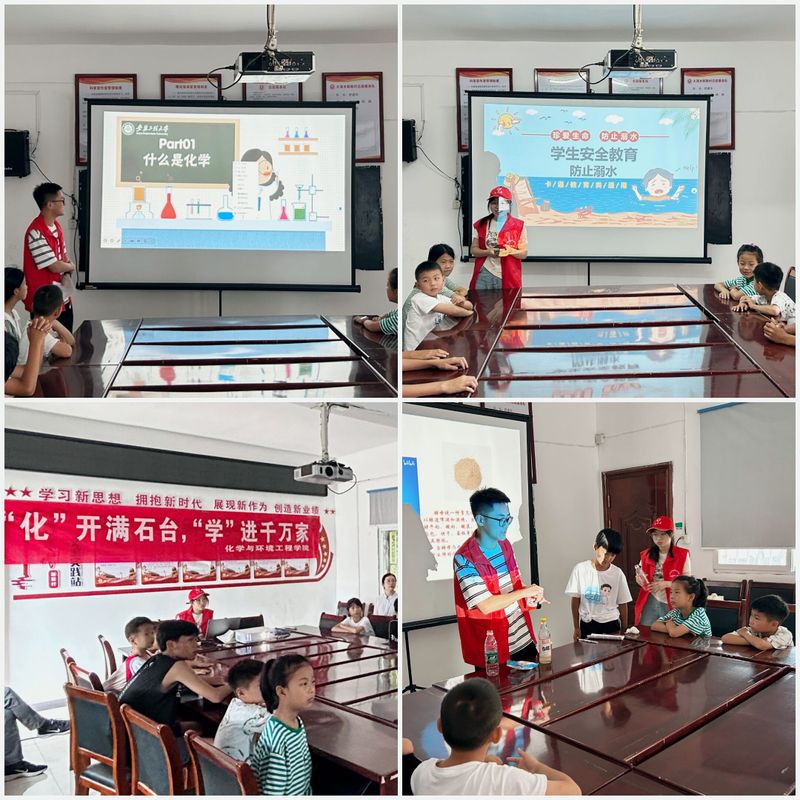 深入学习宣传贯彻习近平新时代中国特色社会主义思想,全面落实党的二十大精神,进一步提高农村儿童科学文化素质,将科普知识送进乡村,助力乡村振兴战略实施,7月6日7月8日化学与环境工程学院“魔法化学社会实践池州市石台县大演乡新联村开展主题为“化”开满石台,“学”进千万家科普知识进乡村社会实践活动。