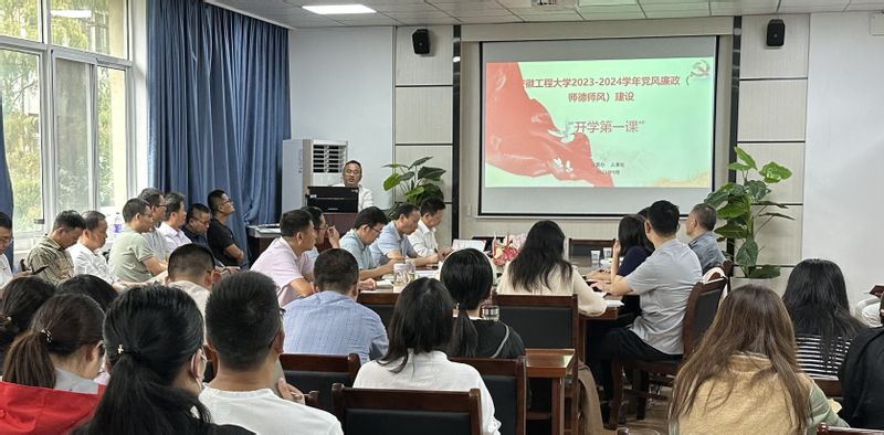 为进一步做好学院博士点申报再推进再动员,充分发挥人才资源的优势,激发人才活力,依靠人才要效益,巩固拓展学习贯彻习近平新时代中国特色社会主义思想主题教育成果;同时引导广大党员干部教师树立廉洁自律意识、加强师德师风建设。9月27日下午,校党委副书记苏国红到第一版主 出席学院教职工会大会并作指导讲话,校纪委副书记、纪委办主任郭广春陪同并在学院会议室开展党风廉政(师德师风)建设“开学第一课”巡讲,学院全体教职工参加会议,会议由学院党委书记章兵主持。