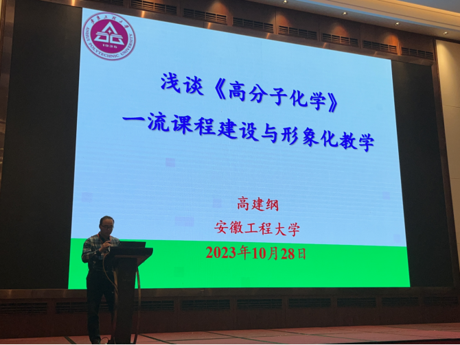 会上,安徽省化学学会第十届理事会理事高建纲教授代表学院参加了理事会会议做了题为“浅谈《高分子化学》一流课程建设与形象化教学”的主题报告。高建纲分享了课程建设团队在《高分子化学》国家级一流课程申报和建设过程中的好的做法和心得体会,并结合课程建设中推行的形象化教学体系设计与实践与参会代表做了交流,取得了热烈的反响和良好的推广效果。