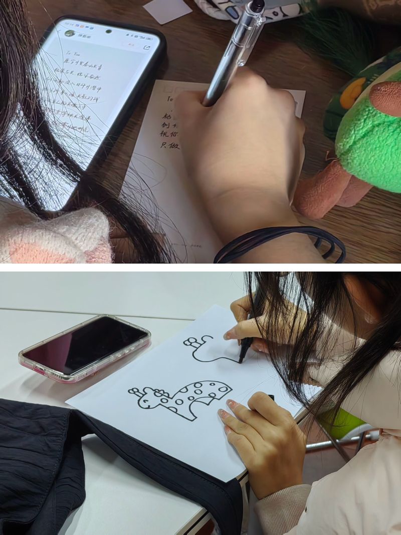 参加同学扫描提前准备的录音贴纸二维码,录制自己的音频文件,留下声音和足迹。同学们亲身体验,大家有对自己未来的期许鼓劲,有对家人朋友的美好祝福,有对老师同学的诚挚感谢,还有一些不常与人说的“小秘密”……温暖的氛围、友好的互动,大家通过这种方式吐露心声,肆意表达,释放压力,活动现场轻松热闹。大家纷纷表示,通过参与有趣的活动,不仅释放了学习压力,放松了心情,而且充实了自己的课余生活,深深感受到了幸福与快乐。