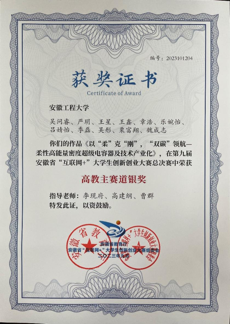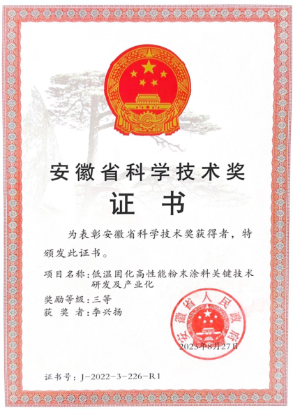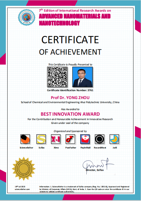 13.获安徽省科学技术奖三等奖一项, 获2023年国际学术“最佳创新奖”一项。