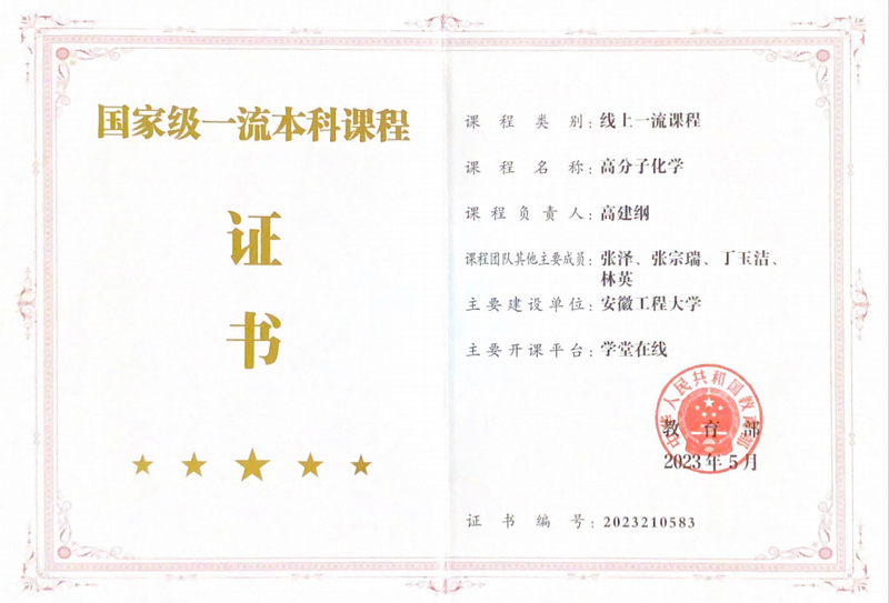 6.加强应用化学、化学工程与工艺专业国家级一流专业建设点建设工作,补齐短板、对标建设;《高分子化学》课程获批国家级一流本科课程,《结构化学》获批省级课程思政示范课程,《化工热力学》课程获批省级一流课程;获批省级教材建设项目1项。