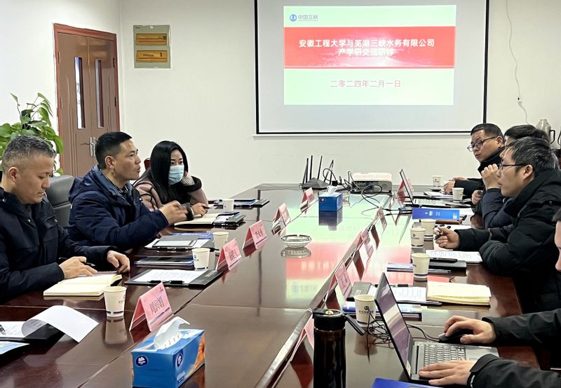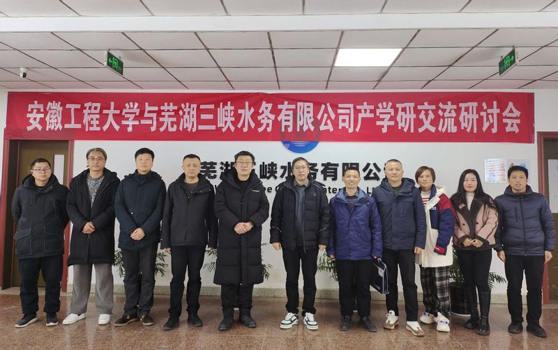 2月1日,第一版主 副院长徐大勇、环境工程系主任杨晓凡、系部教师周润娟、胡颖一行赴芜湖三峡水务公司开展产学研合作交流,王宽、宋磊、段海波、卢允锋等公司领导及骨干出席会议,会议由三峡水务公司副总经理王宽主持。