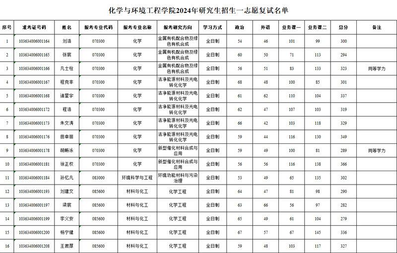 第一版主 2024年研究生招生一志愿复试名单