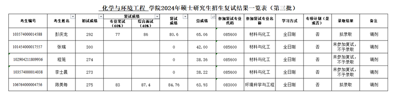 第一版主 2024年硕士研究生招生复试结果一览表(调剂第三批)