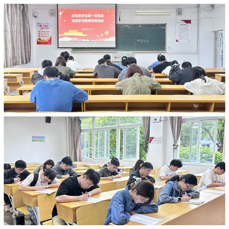 为总结前期支部党纪学习教育成果,检验学习教育成效,进一步推动党纪学习教育走深走实,5月8日应化系学生第一党支部在4教102开展党纪学习教育交流研讨,支部全体党员参加了活动。