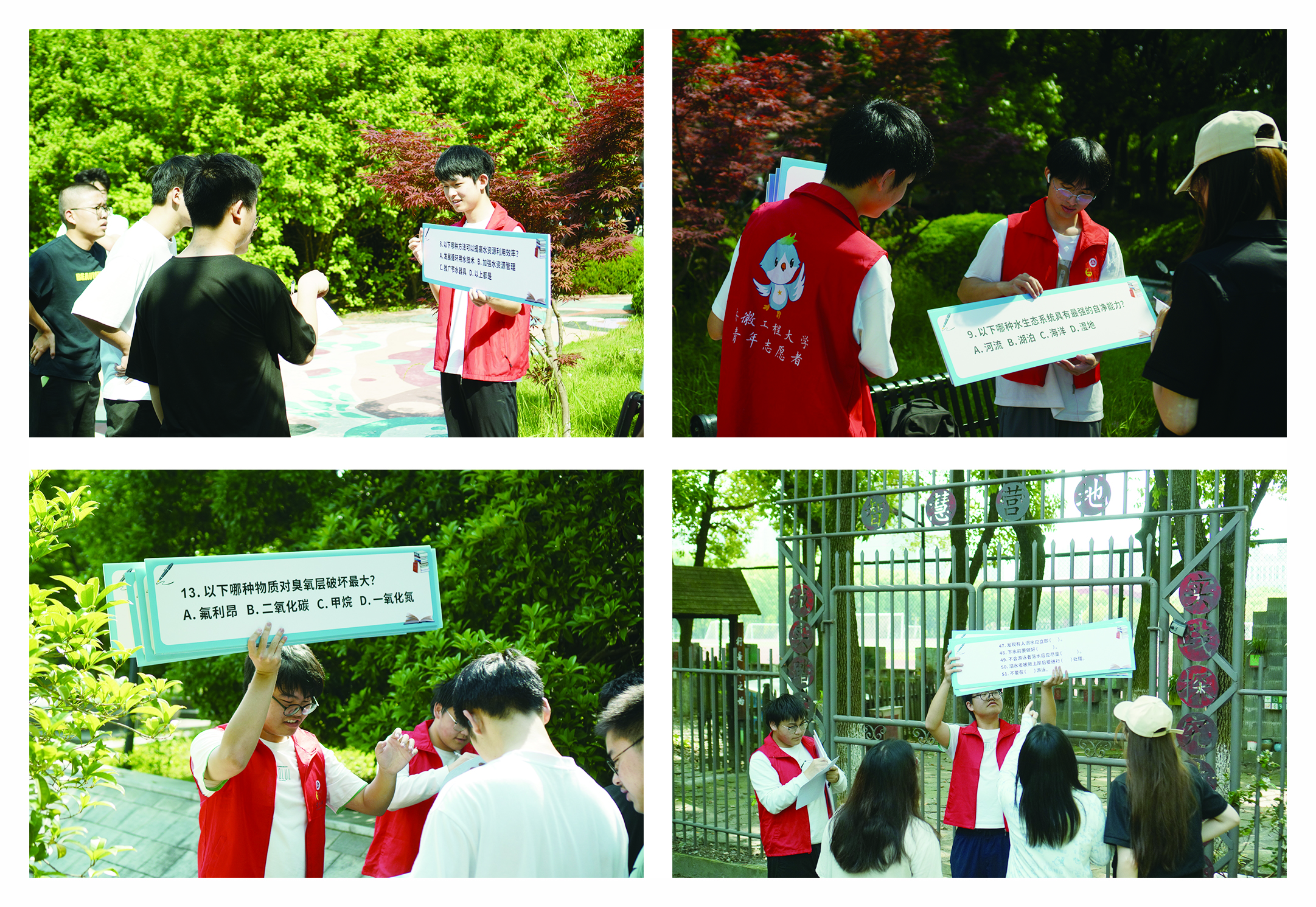 活动于校香樟营地、设计学院、中心水景等景观带设置打卡点,参赛者需至各打卡点完成答题环节,主体包括“水环保”、“基础环保”及“防溺水”常识。活动期间,参赛队伍以“错峰”方式出发,自行决定最优路线,争分夺秒拼赛绩。本次活动第一版主 学子积极参与,热情高涨,志愿者尽职尽责,保障了流程衔接顺畅,共计五支学生队伍获奖,其中由2023级化学工程与工艺专业组成的“宇宙护卫队”获得一等奖。
