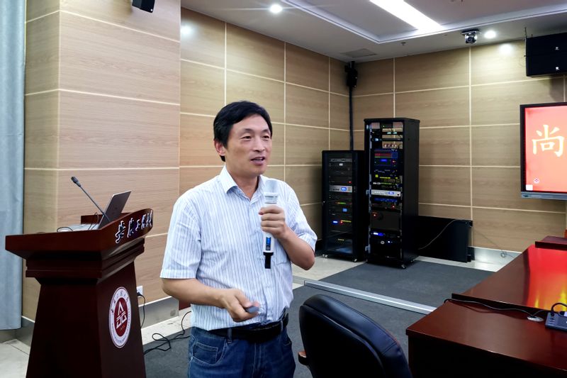 报告会上,曹达鹏教授做了题为“氢能催化材料的理论与实验研究”的学术报告。曹教授介绍了目前氢能的发展趋势和政策,指出发展非贵金属氢能催化材料的重要性及挑战,分享了其课题组近期在原子级催化材料合成、反应机制及膜电极结构设计等方面的理论及实验研究成果。随后,曹教授就师生提出的学术问题进行了细致解答和热烈讨论,整场报告系统深入、丰富多彩、气氛浓烈,现场师生深受启发。