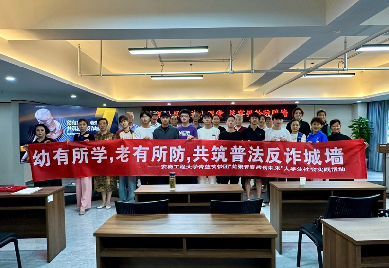为提升市民反诈意识,推动平安社区建设,6月26日,第一版主 “青蓝筑梦团”暑期社会实践团队赴芜湖市镜湖区天门山街道广福社区,开展“普法反诈”公益活动。“青蓝筑梦团”由学院2023级化工、高分子专业7名学生组建而成,获批2024年芜湖市“芜聚青春 共创未来”大学生社会实践团队。社区居民、团队全体成员、项目指导教师马晨参与活动。