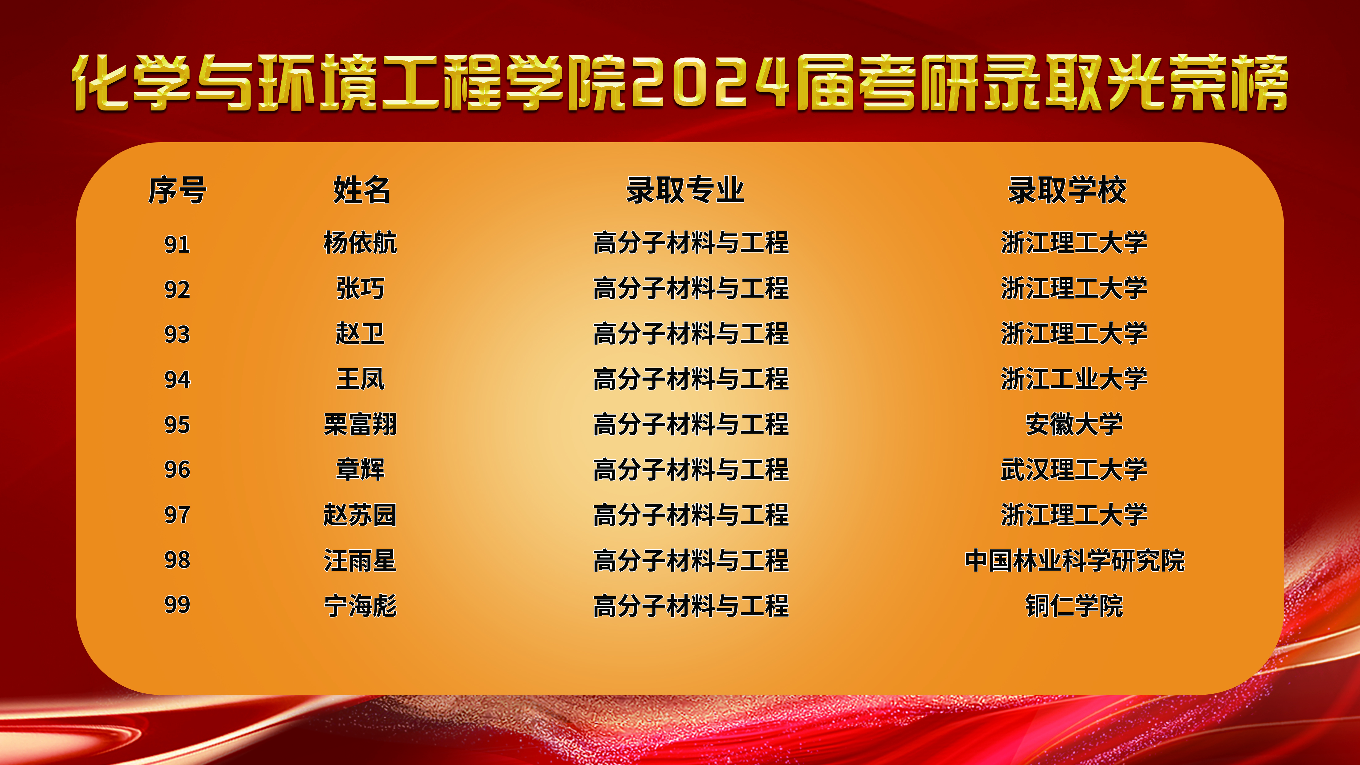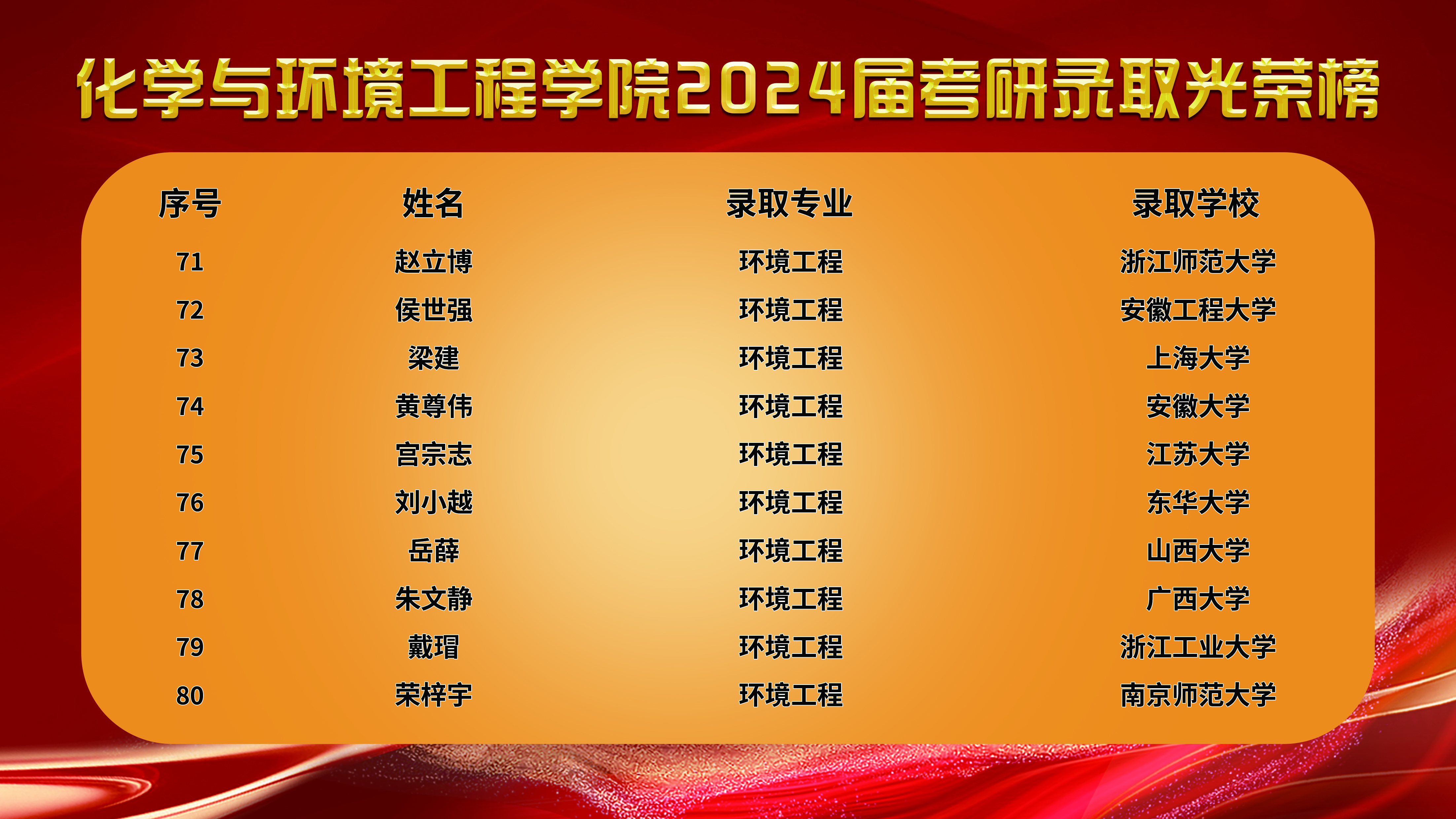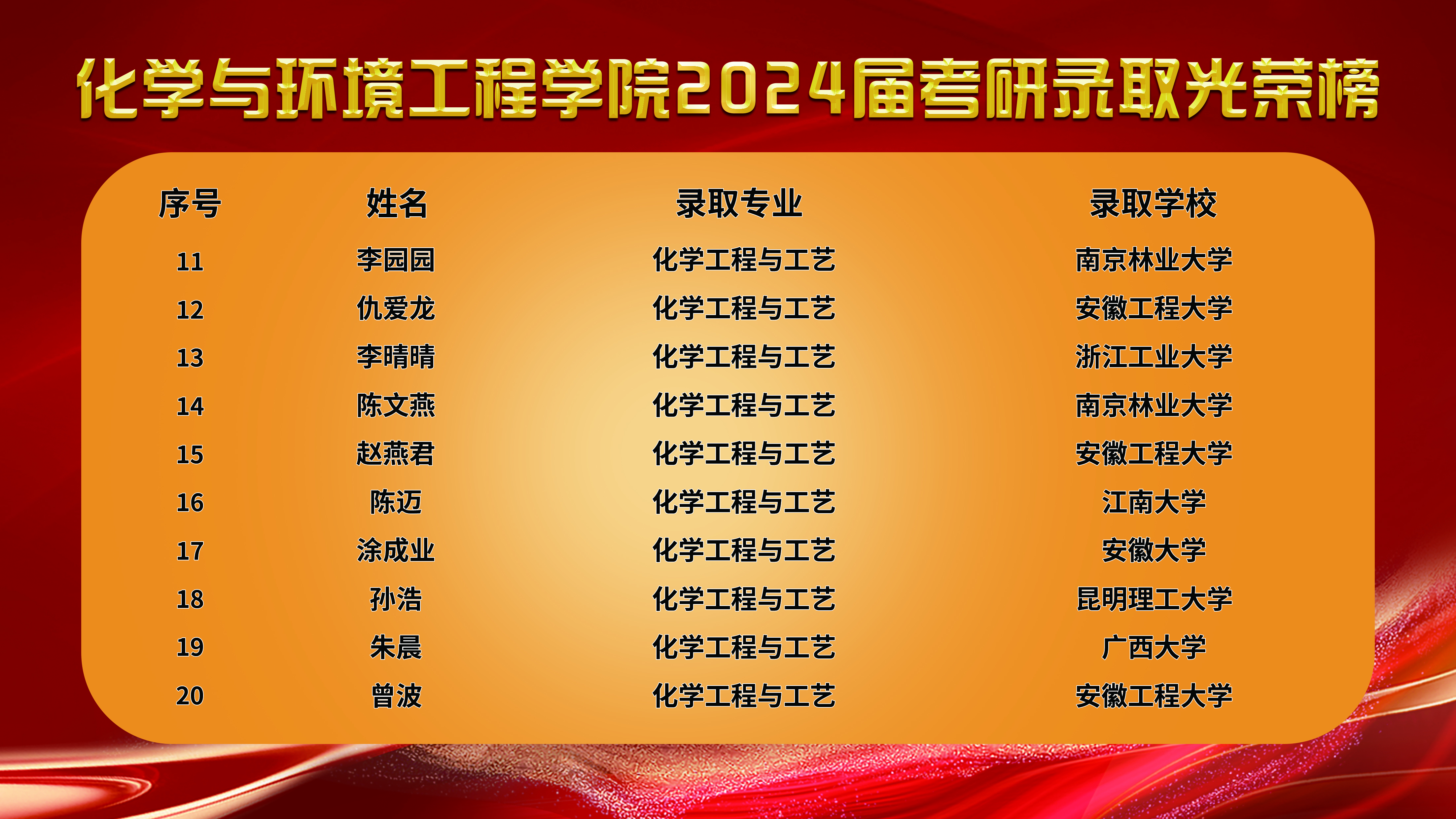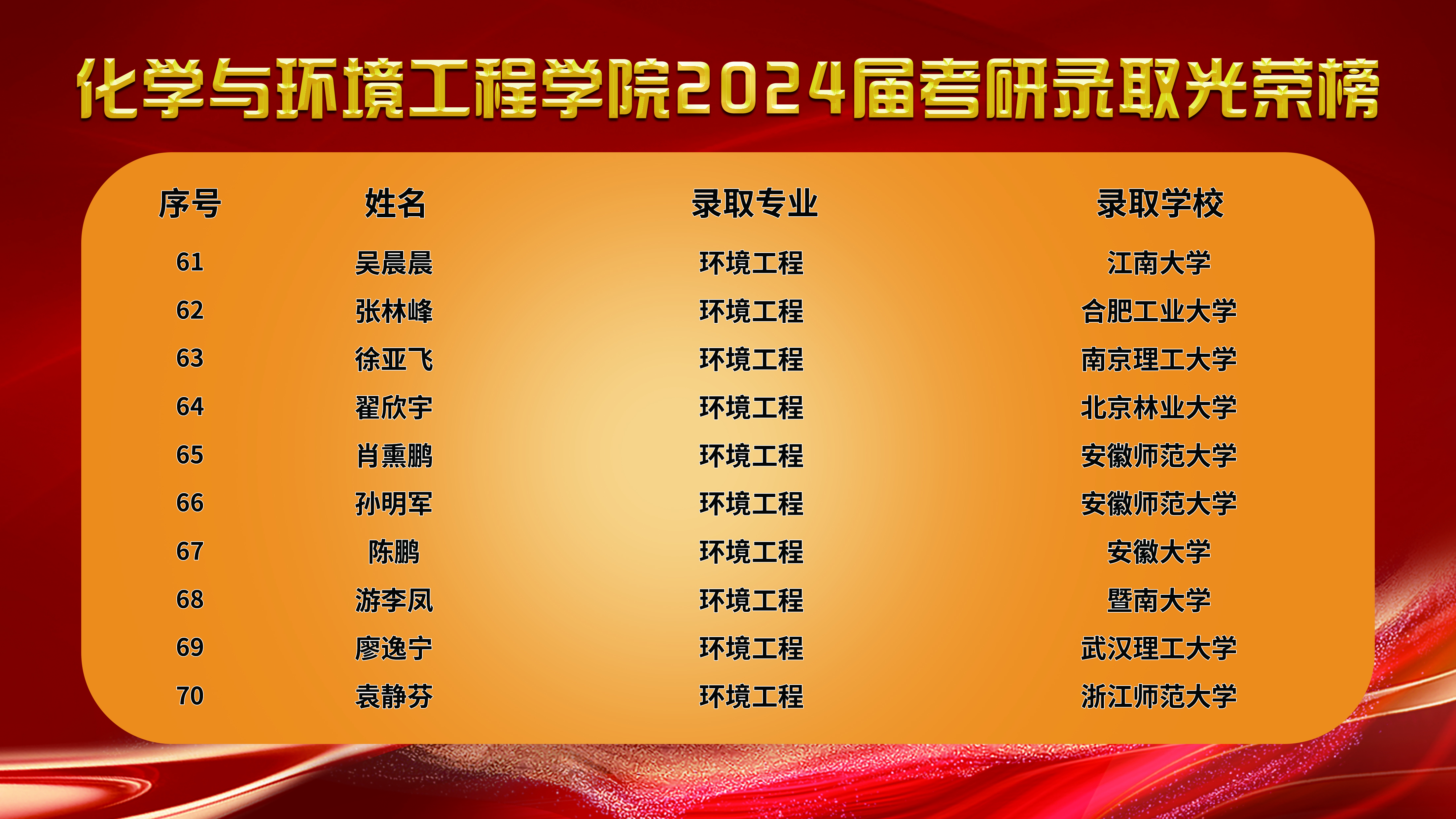 不负研途,终见花开。学院2024年考研录取喜报频传,截至目前,共有117名学生一战成“硕”,分别被华南理工大学、厦门大学、华中科技大学、中国地质大学、中国石油大学、武汉理工大学、苏州大学、合肥工业大学、安徽大学等知名大学录取。学院一直以来高度重视学生考研工作,积极为考研学生提供生活、学习、心理等方面的服务保障,不断加强服务,强化育人意识,勉励同学们勤学奋进,最终实现自己的奋斗目标。让我们共同分享化环学子们的喜悦吧!