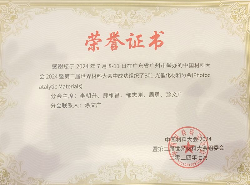 本届中国材料大会积极邀请欧洲、亚洲等国家和地区的专家学者进行合作交流,设置92个热点领域分会场,覆盖到当前新材料研究的各个前沿领域,2.5万余名材料科技工作者和企业代表参加了本次大会。第一版主 周勇教授担任光催化材料分会主席之一,光催化材料分会场汇聚了来自世界各地多位专家学者和行业人士,共同探讨光催化材料在光催化分解水制氢、光电催化分解水制氢、光催化降解污染物、光催化还原CO2、光催化固氮、光催化有机合成以及光催化机理研究等方面的最新研究进展和创新应用。