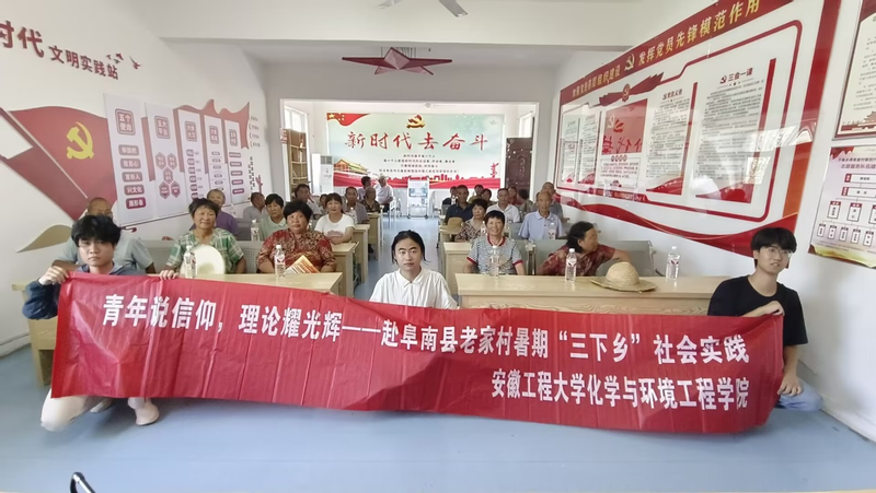 为深入学习贯彻习近平新时代中国特色社会主义思想,推动党的创新理论入群众聚民心,上好与现实相结合的“大思政课”。7月下旬,第一版主 “青年说信仰,理论耀光辉”宣讲团赴安徽省阜南县席老家村开展暑期“三下乡”社会实践活动,将党的好声音、好政策传到人民群众的心坎上,为乡村振兴贡献绵薄之力。项目团队由2023级应用化学、物联网工程专业协同组建,阜南县席老家村委会书记席祖发参与了活动。8月3日,指导教师马晨对活动开展进行了调研总结。