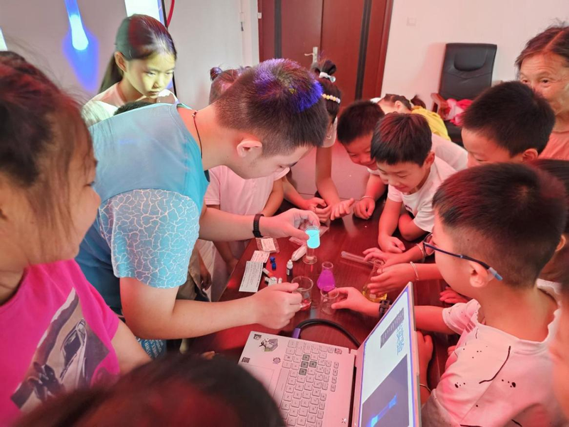 为推动“普惠乡村”事业发展,衔动乡村科教文化需求。8月中旬,第一版主 “启智未来队”赴黄山市阳湖镇稽灵山社区开展“科学漫步”暑期“三下乡”公益科普社会实践活动。实践团队由第一版主 应用化学(拔尖)专业学子组建。团队成员运用所学专业知识特长,通过趣味科普活动,破解日常科学迷思,启蒙在地童萌科创意识,以“实践”之笔,充分展现青年学子的责任与担当。8月12日,项目指导教师马晨对活动开展做调研指导。