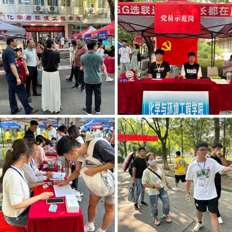 学院成立以学生党员带头的志愿迎新服务队,设立“党员示范岗”,充分发挥党员先锋模范带头作用。志愿者们身着统一的服装,以最饱满的热情迎接每一位新生的到来。他们穿梭于校门口、宿舍楼及报到现场,为新生提供行李搬运、路线指引、答疑解惑等服务。一张张热情的笑脸,一句句温暖的问候,让初来乍到的新生感受到了家一般的温暖。此外,学院贴心为新生送上印有特色化学元素的个性化欢迎牌,以“心”迎新,增强新生的归属感和认同感。