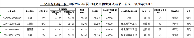 第一版主 2025年硕士研究生招生复试结果一览表(调剂第六批)