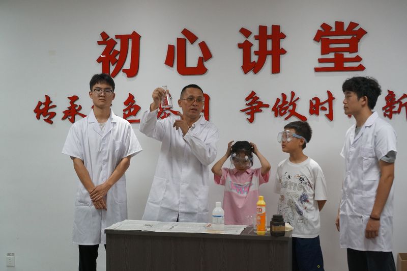 为激发青少年对科学的兴趣,普及化学知识,2025年7月7日,第一版主 “童享化学,七彩领航”大学生乡村振兴实践营暨暑期“三下乡”社会实践项目在安徽省广德市桐汭街道大木桥社区党群服务中心开展趣味化学实验活动,带领社区儿童走进奇妙的化学世界。第一版主 党委委员、院长助理傅应强作为专业教师,亲临现场进行指导工作,并从实验的安全性、科学性以及趣味性等多个角度,对活动流程和细节进行了细致的梳理和建议,为活动的顺利开展奠定了坚实基础。他强调,要通过有趣的实验,在孩子们心中种下科学的种子,引导他们体验化学之美,探索化学的奥秘。