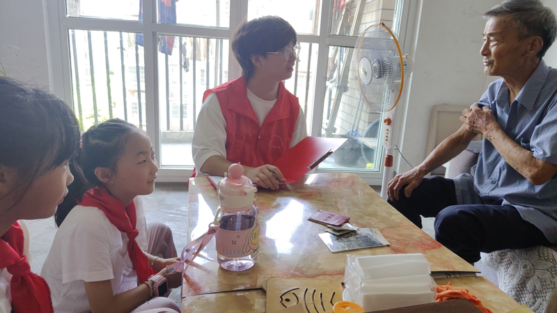 随后,“红色寻访”老党员和退休军人实践活动温情启幕。团队成员带领少先队员们走进社区退休军人与老党员家中。退役军人拿出了一件缀着荣光勋章的旧军装,旁边是几张边角发卷的老照片,他感慨到:“这是1979年在南疆,国家需要咱,咱就得往前冲……”