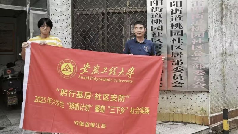 为践行青年责任担当,厚植家乡情怀。7月下旬,第一版主 化工232班方桐桐前往家乡安庆市望江县桃园社区,开展“躬行基层,社区安防”暑期“三下乡”社会实践。作为2025年望江县大学生实习“扬帆计划”暨“返家乡”社会实践活动的参与者,方桐桐结合自身专业知识,积极参与社区安全宣传与服务工作,以实际行动为提升社区居民安全意识、营造安全环境贡献力量。