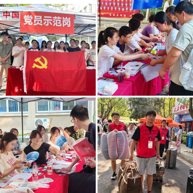 从在校门口举牌引导,到帮助新生搬运行李;从在报到点耐心解答疑问,到带领新生熟悉校园环境,志愿者们用真诚的笑容和汗水消除了新生们的忐忑与陌生感。学生党员们更是亮明身份,主动上前提供帮助,他们不仅分享学习生活经验,还积极向新生介绍学院的党建活动,发挥了先锋模范作用,用实际行动诠释了责任与奉献,让党旗在迎新一线高高飘扬。